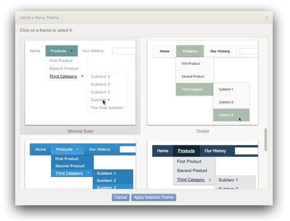 In the upper portion of the Styles Panel, you'll see available menu themes: